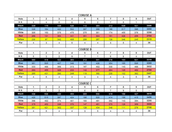 - Total Yards A-B:6765 Yards, A-C:7065 Yards, B-C:6938 Yards
