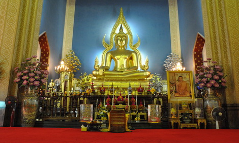 At The Golden Buddha Temple or Wat Trimitr, you will see the world's largest Golden Buddha image, Phra Maha Suwanpatimakorn, the precious image, 5 metres (approximately 16 feet) high, consisting of 5.51 tons of solid gold. It is brilliant piece of work; the ferfect flowing lines, pensive expression, and intricate details make this perhaps the most beautiful Buddha image in Thailand, a priceless work of art.